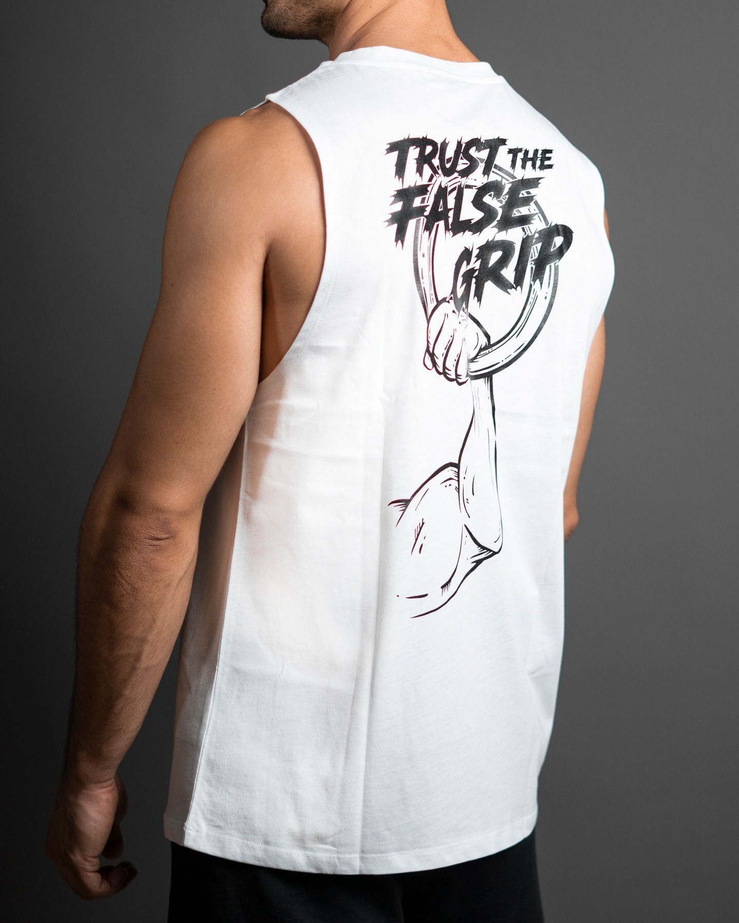 WI "Trust The False Grip" White Tank-Top - Workout Industry